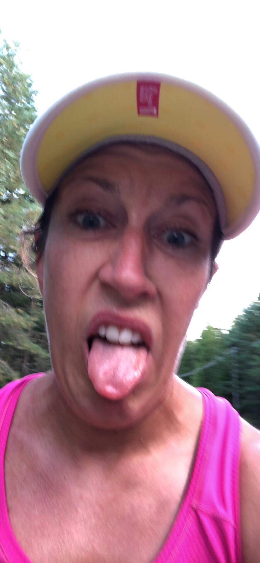 Efter tre km skickade jag ett sms till min sambo att det gick APDÅLIGT och att han kanske fick komma och hämta mej. Inget svar från honom så jag släpade mej vidare i spåret. Upp för en backe kröp jag nästan. Jag kände mej som om jag blivit åttio år gammal, blivit doppat i cement och någon snott min rullator.