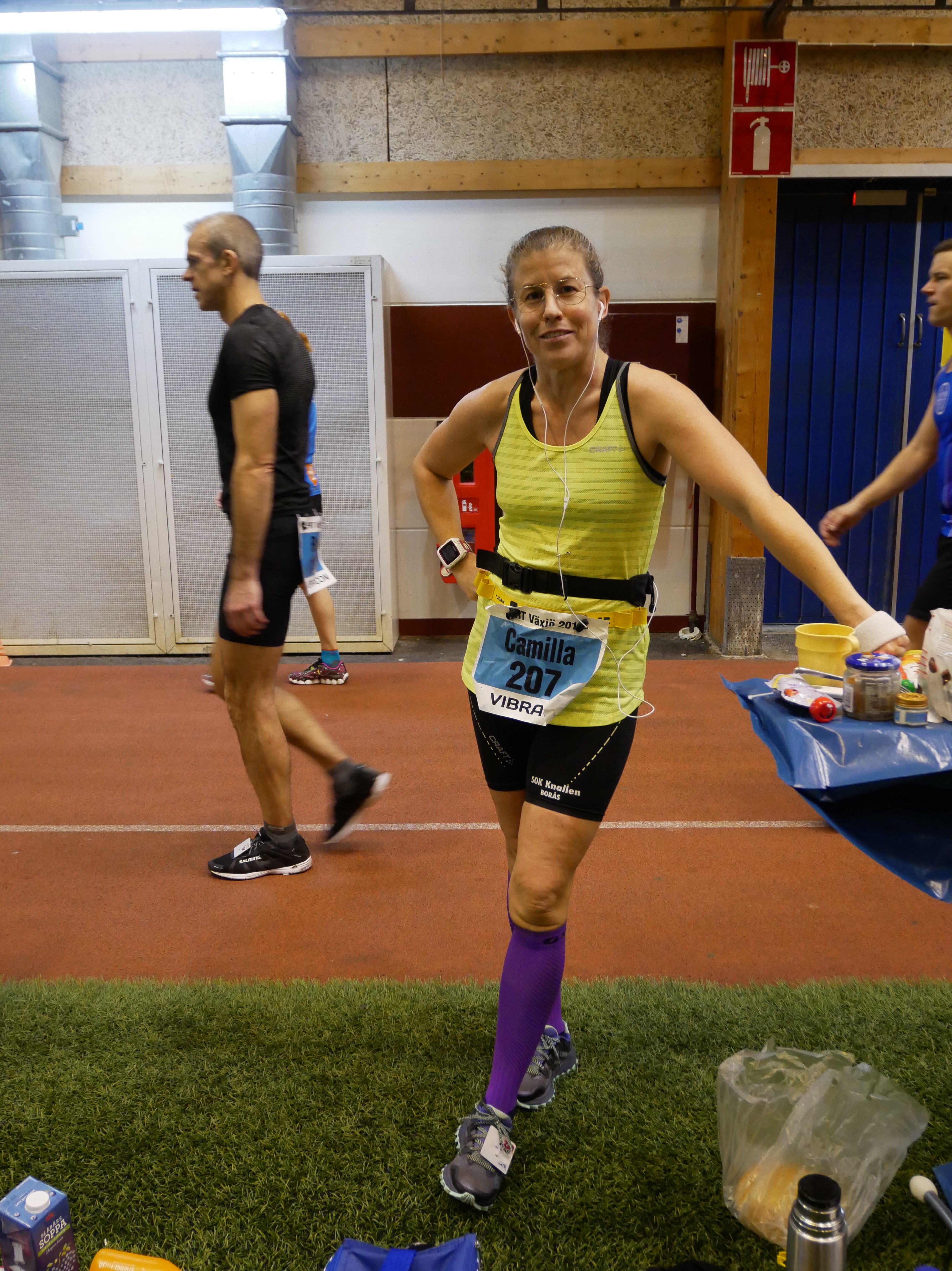 Det var även roligt att åka ner eftersom fler godingar från klubben var nere och sprang, både 24-timmars och 12-timmars. Det är alltid roligt att pepp och heja på sina kompisar. Så strax efter fyra styrde vi kosan mot Tipshallen i Växjö där loppet gick.