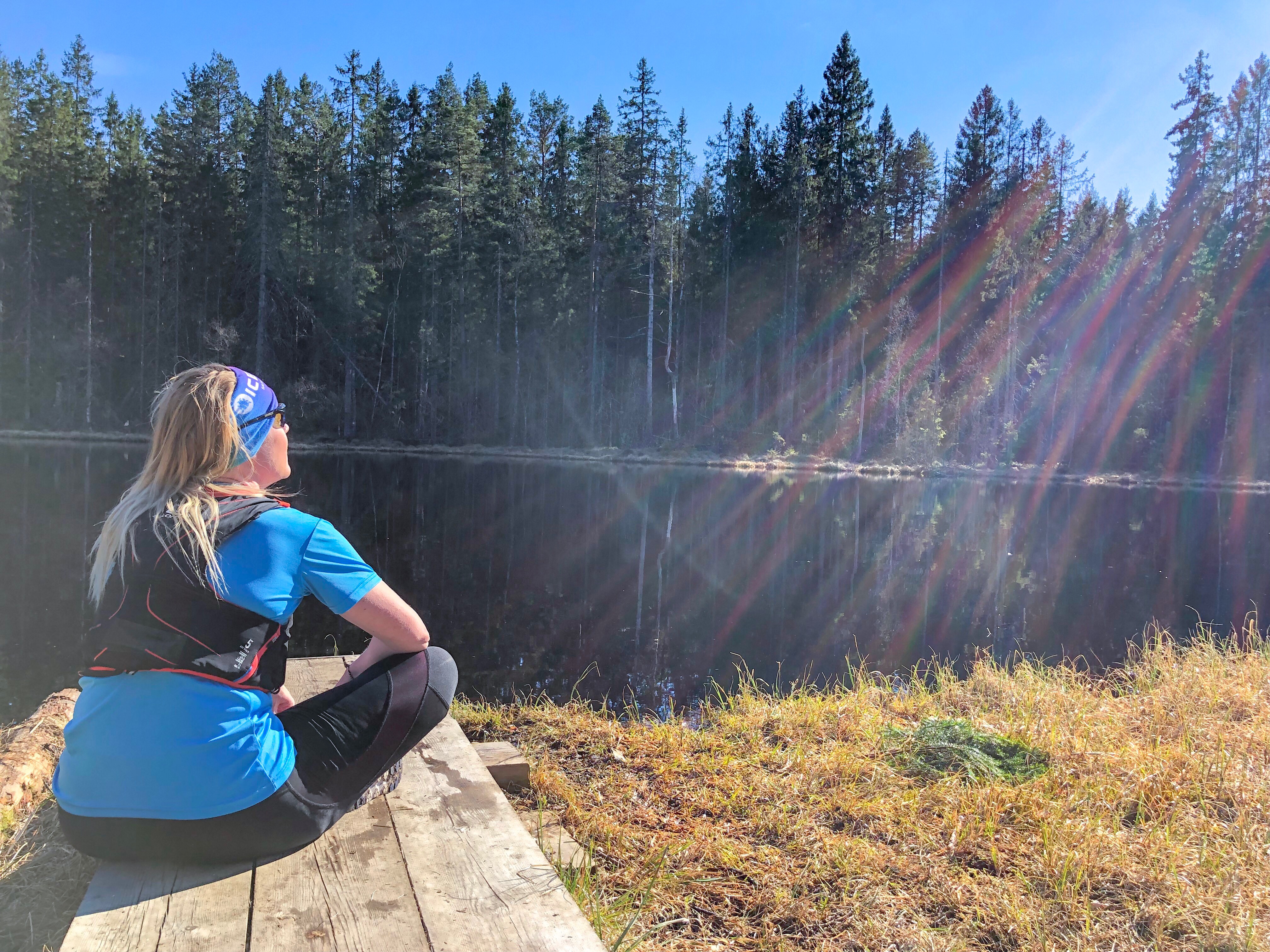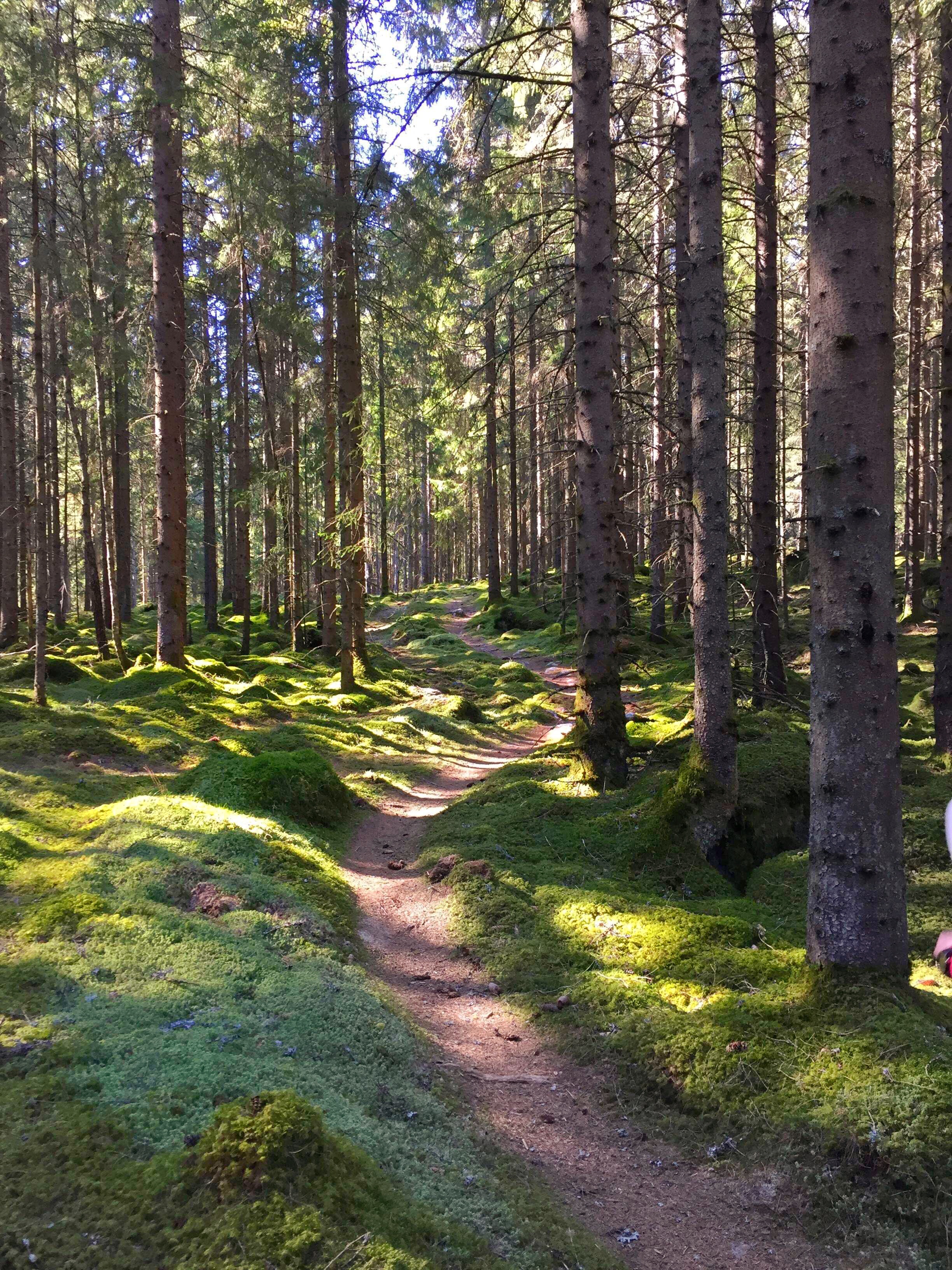 Ingen press på tid och prestation. Vill man gå så går man, vill man stanna och titta på en sten så gör man. Behöver man klappa mossan så är det mer än okej. Känner man sej tveksam på om man ska ta höger eller vänster i en korsning, killgissar man och tar eventuella konsekvenser. Eller så springer man lite åt ena hållet, ändrar sej springer tillbaka och ändrar sej igen. Blir man sugen på en liten stig som ser lockande ut så följer man den. Och framförallt, hittar man en tjärn med solsken och glitter så stannar man en stund och bara andas och njuter.