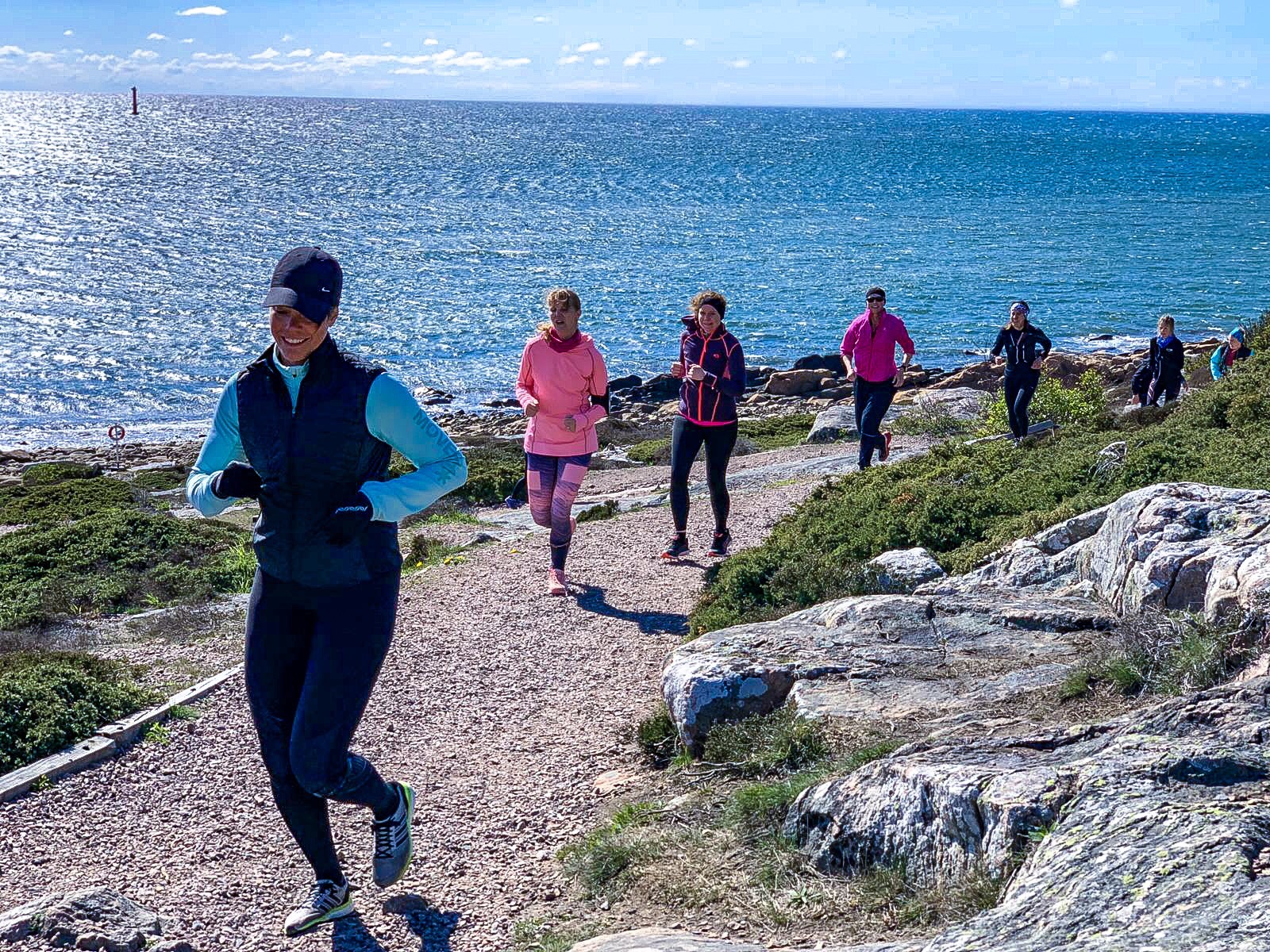 När huvudet sedan snurrade av information så kom det som för min del är det ljuvligaste på hela eventet. Att få springa med hjärtat och själen längs med fantastiska Prins Bertils Stig. Att med solen i ögonen och havsvindar i håret få jogga fram, stanna upp för att njuta av utsikten och springa exakt så långt man själv vill, är magiskt. Alla vände när man kände att det räckte men vi var fem glada ( och lite trötta ) själar som sprang 20 km tillsammans. Hjälptes åt när det blev tungt och njöt av utsikten.