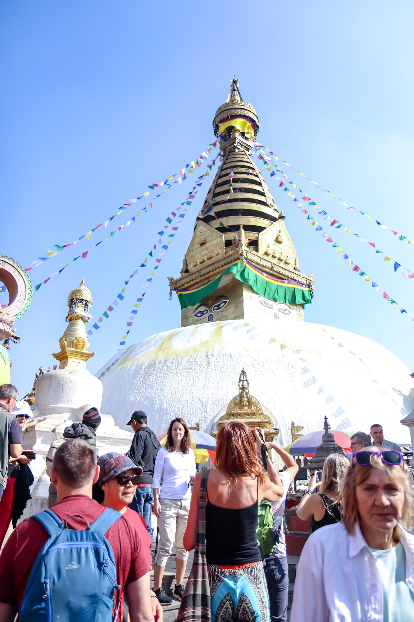 Vi började med ett besök på Monkey Temple, eller Swayambhunath Stupa som det heter på nepalesiska. Ett mycket gammalt buddhistiskt område med en berömd stupa ( den vita byggnaden ) olika tempel och mycket att titta på. Och givetvis som namnet antyder, en hel del apor!