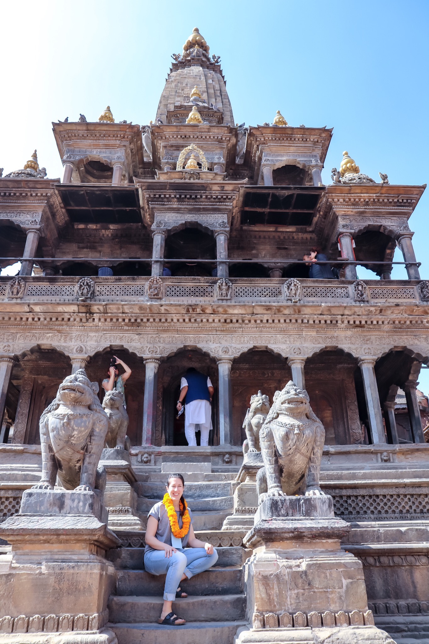 Efter det satte vi oss i bussen igen och åkte över floden till Patan, den tredje största staden i Nepal och tog ett besök på Dunbar Square. Ett gammalt område som betytt mycket för buddhismen och som nu mer är klassat som ett världsarv av UNESCO. Fantastiska byggnader, makalös arkitektur och extremt mycket att titta på.