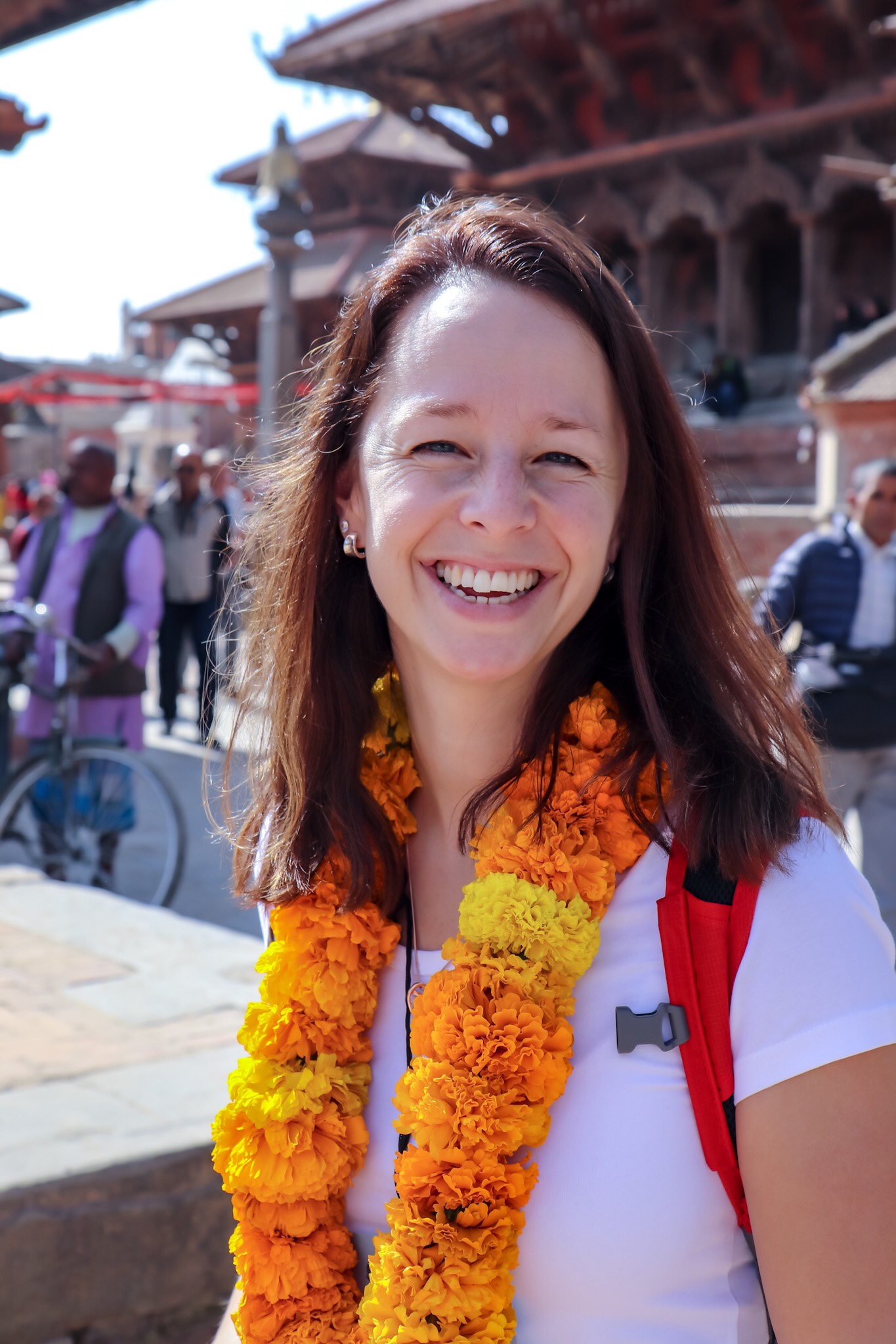 Efter en lång flygresa mötte vi upp resten av gruppen och blev skjutsade till vårt hotell Holy Himalaya som ligger i stadsdelen Thamel, ett livligt område med smala gränder, fullfart på trafiken, små butiker och mängder av människor.