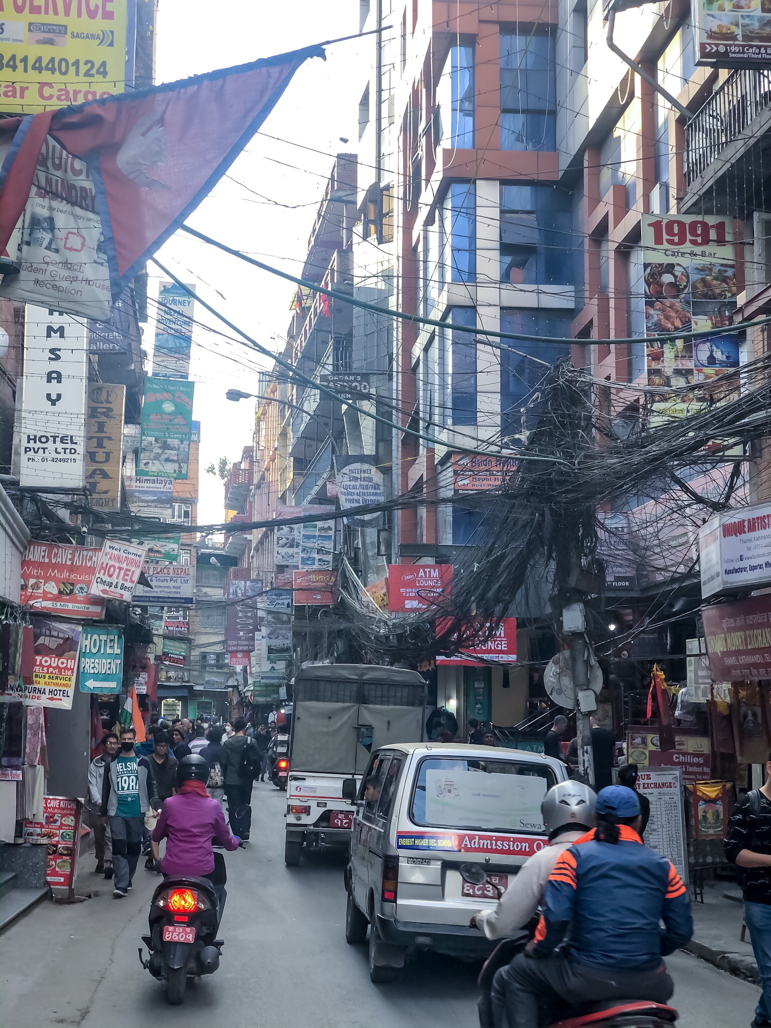 Och inte att förglömma, fascinationen över hur deras trafiksystem fungerar, bilar, bussar, moppar och människor i ett enda virrvarr. En massa tutande människor som inte verkar ha några regler men ändå såg vi inte en enda olycka eller arga miner. Det nepalesiska elsystemet lämnar också många frågetecken, hur tusan funkar det? Ett enda virrvarr och trassel av kablar som går härs och tvärs och hänger ner överallt.