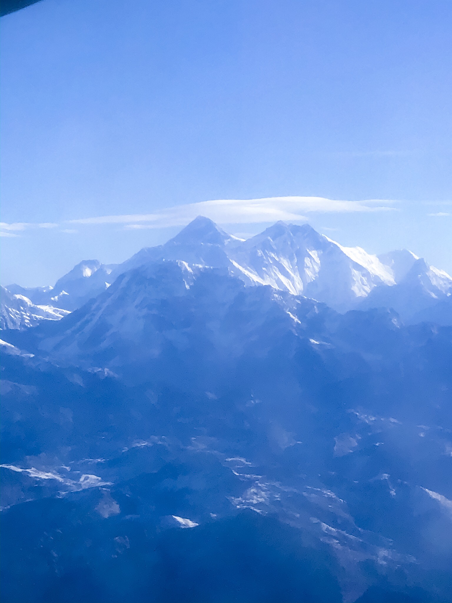 Den 6/11 var det dags! Jag skulle äntligen få se henne! Universums Moder. När klockan ringde 4:40 gick det förvånansvärt lätt att komma upp ur sängen och trots kaffe- och frukostbrist studsade jag glatt in i bussen som tog oss till flygplatsen där vi ganska omgående stötte på patrull. Passen, ingen av oss hade tänkt på att ta med oss passen då detta var en ordnad resa, men efter många om och med, insamlade körkort, mailade passkopior och glatt humör löste sej allt och vi kom iväg lagom till när solen började kika fram genom dimman som täckte Katmandu. Efter ca 30 minuter fick vi äntligen syn på dem, de snötäckta bergen, jorden jättar, några av de högsta topparna och sen, äntligen, skymtade hon! Sagarmatha, Himmelens huvud, mitt drömberg, Mount Everest! Lyckopirr spred sej genom hela min kropp när jag äntligen fick se henne där hon sträckte sej mot solen 8848 m upp i luften. Givetvis hade jag velat se henne på närmare håll, men jag är så lycklig över att jag sett världens högsta berg. Dessutom i perfekt väder, solsken och helt klar sikt. Efter att cirkulerat ett tag så vände planet tillbaka och vi skålade i bubbel. Glada nöjda tog sedan Sara och jag en lugn dag i Katmandu och började ladda för resans stora äventyr, vandringen.
