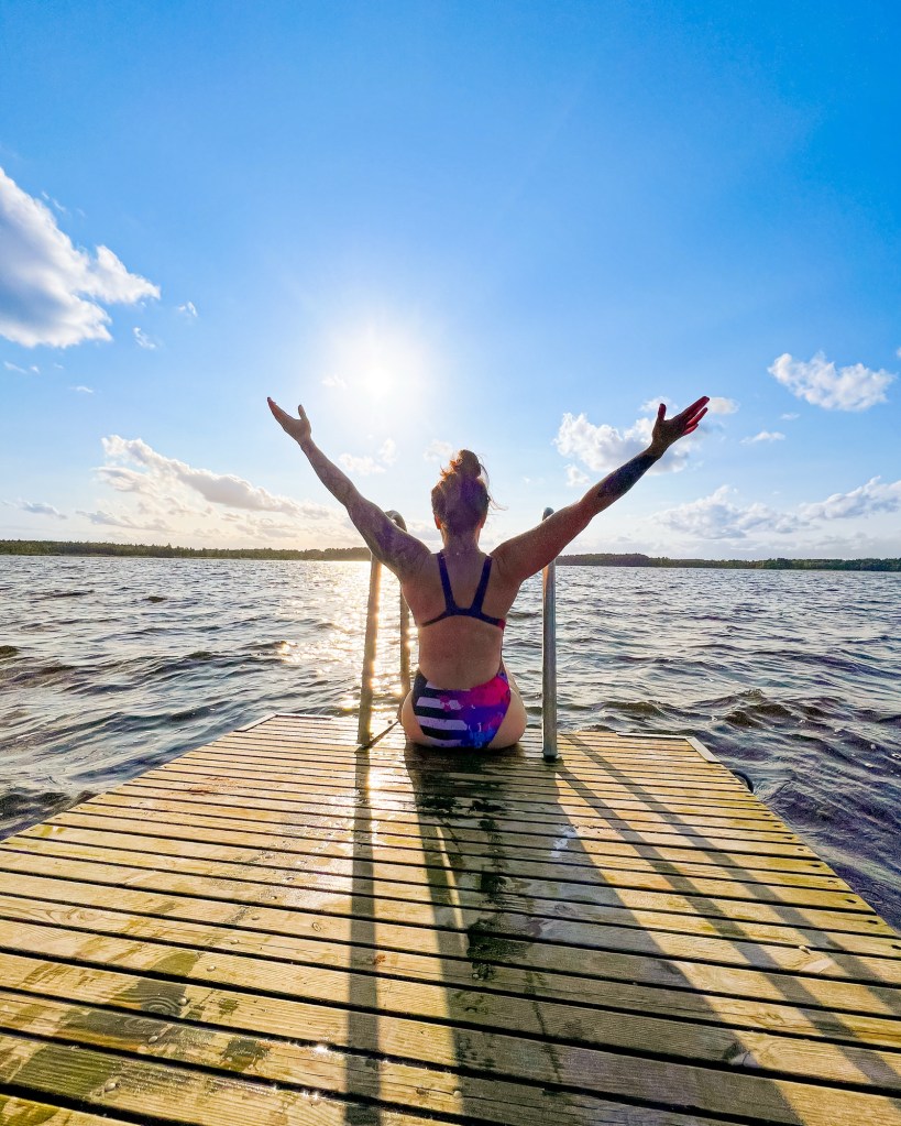 Jag passar på att bada mycket. Skönt för själen och för lymfsystemet. Går barfota i gräset och tar mej tid att andas lugnt. Och framförallt så skippar jag alla krav och måsten!