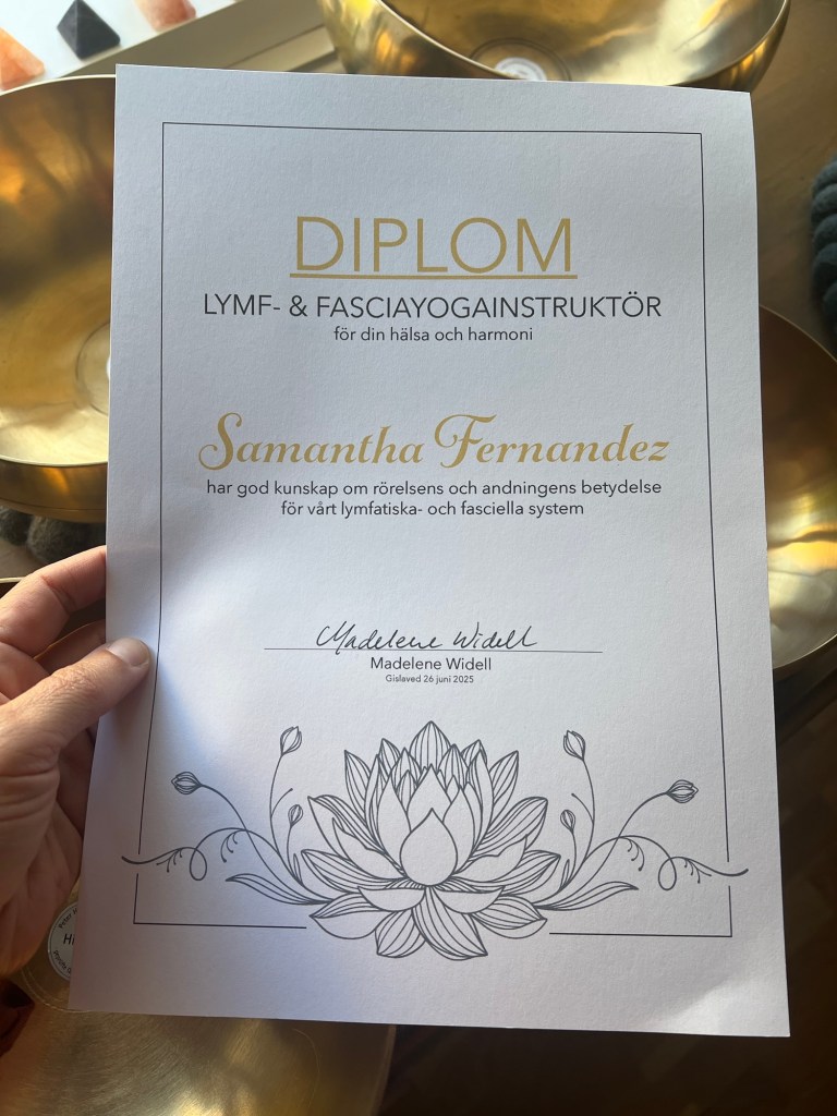I veckan som gick så blev jag klar lymf- & fasciayoga instruktör och ser så mycket fram emot att få köra igång med dessa mjuka härliga rörelserna till hösten.