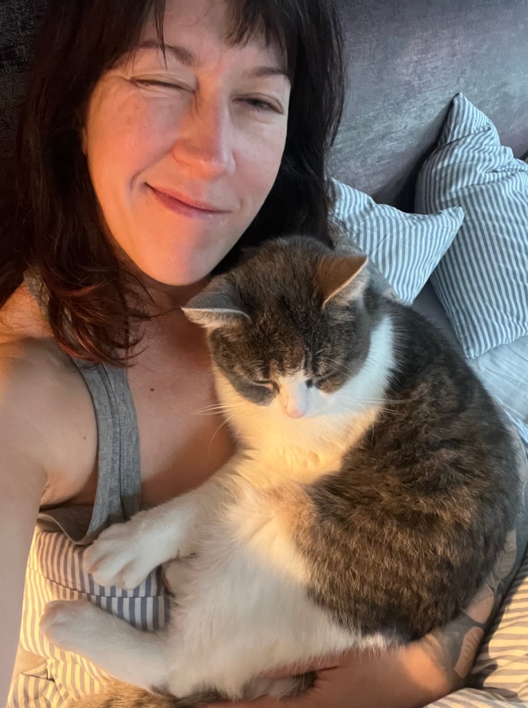 Sen avsätter jag lite tid för att skriva min tacksamhetsdagbok och sätter mej med affirmationer. Där efter är det kaffe och obligatoriskt gos med Rut, min lilla katt. Vi har en fin morgonrutin där vi sitter och gosar. Det är verkligen supermysig.
